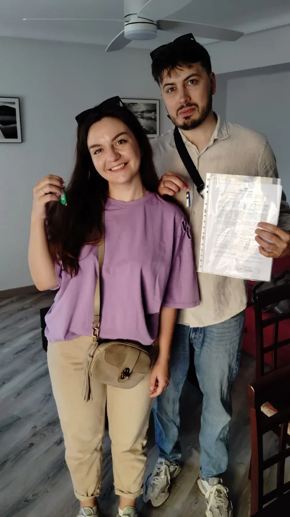 Апрель, 2024. Рассмотреть 100+ объектов и сделать 10+ визитов понадобилось, чтобы найти эту очень красивую квартиру на Gran Via с собственной огромной терассой для ребят с котом. 1400 евро в мес
